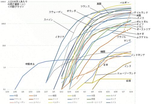世界各国の新型コロナウイルス関係の数値を、木曜日ごとに追ったグラフの続きです。前回は5月14日までのデータでした。https://jukeizukoubou.hatenablog.com/entry/2020/05/15/220516 例によって人口100万人あたりの死亡者数で見ると、今回も似たような傾…